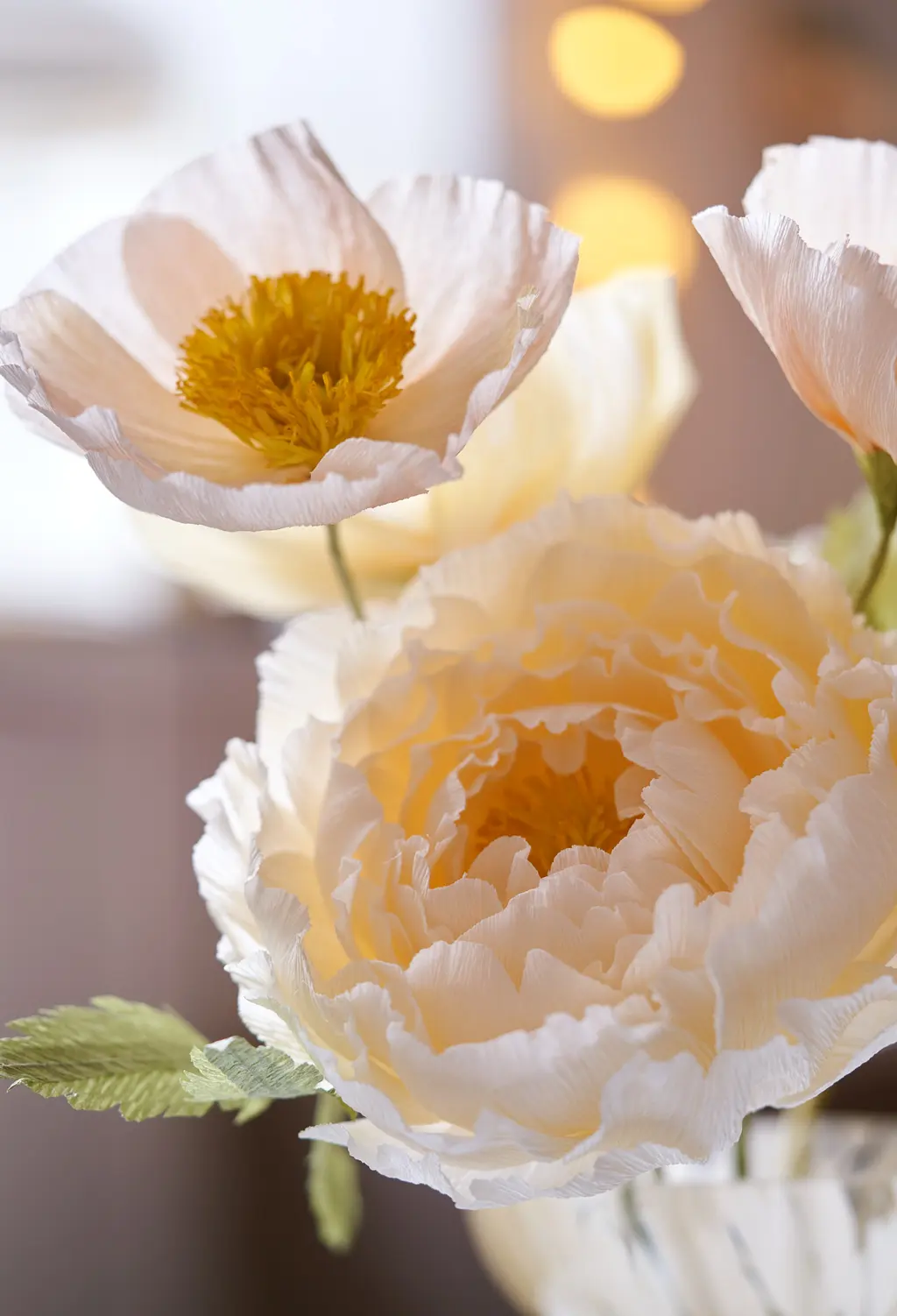 Notre lustre suspendu Renoncule papillon est une création artisanale conçue pour transformer votre plafond en élément décoratif spectaculaire. Réalisée en papier artistique texturé de haute qualité, cette fleur géante apporte volume, élégance et originalité à tout espace.